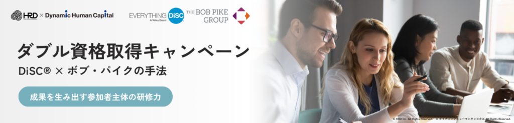 HRD × ダイナミックヒューマンキャピタル、ダブル資格取得キャンペーンを好評実施中~DiSC®とボブ・パイクの研修手法、2つの専門性を同時に学ぶチャンス~