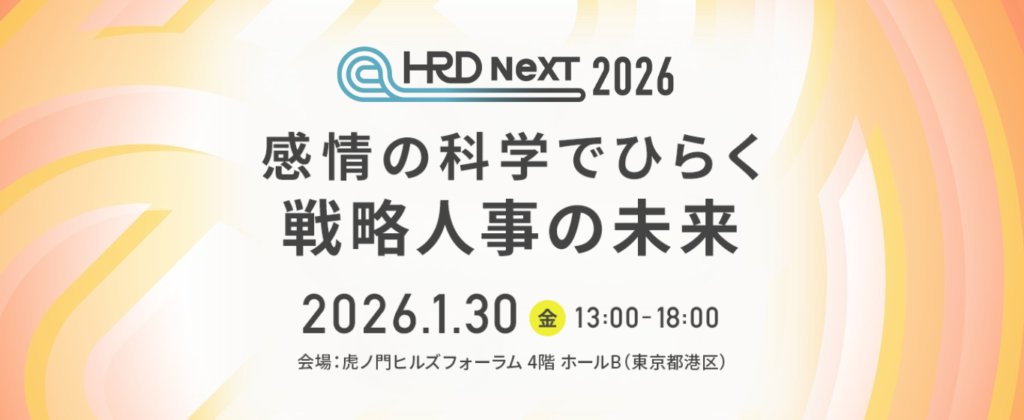 HRD株式会社は、2026年1月30日(金)に年次カンファレンス「HRD NeXT 2026 ― 感情の科学でひらく戦略人事の未来」を対面形式(虎ノ門ヒルズフォーラム)にて開催いたします。