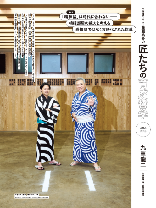 代表取締役の韮原祐介が、雑誌「サイゾー」にて連載している「韮原祐介の匠たちの育成哲学」の第6回記事が掲載されました。今回のゲストは九重部屋・第十四代九重部屋親方の九重龍二氏です。