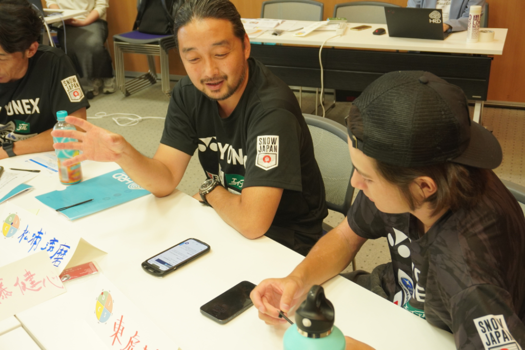 単に自分のスタイルについて理解を深めるだけでなく、ペアやグループでの対話を通じて、選手やコーチが「自分と他者の違い」を構造的に理解し、その違いを踏まえて関わろうとする意識が、自然と芽生えていきます。実際に、相手のスタイルを“変えるべきもの”ではなく、“前提として尊重するもの”として受け止め、言葉の選び方や距離感を調整する様子も多く見られました。