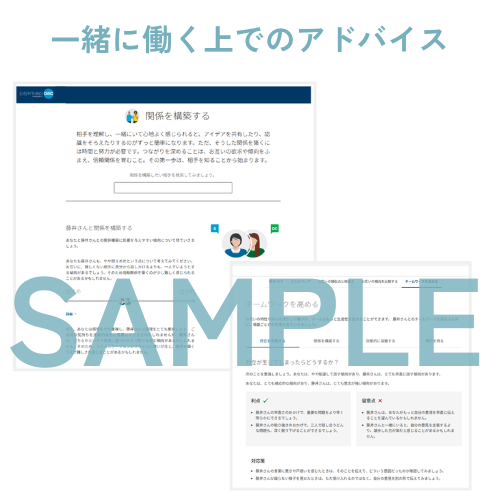 - 一人ひとりの心理特性をもとに、1on1やチーム対話を日常的にサポート